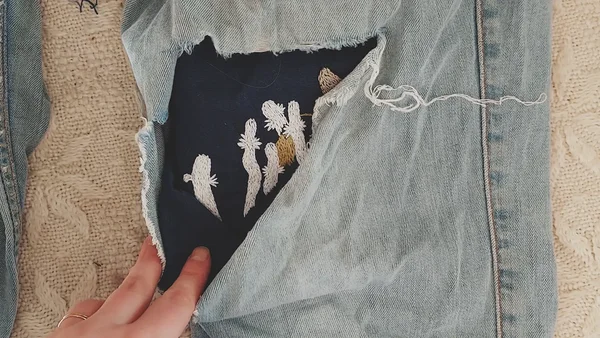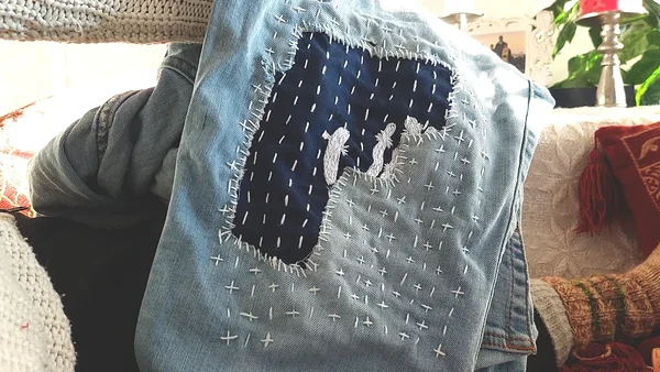 Ja siin on minu sashiko tehnika paranduse katse kaks! Täiuslikult ebatäiuslik.