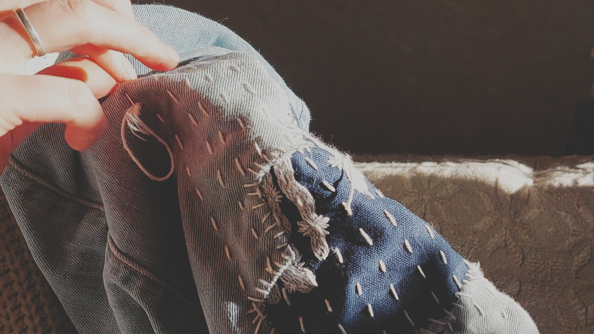 Inventeerisin möödunud aasta lõpus oma käsitöökappide sisu ja koondasin poolikud projektid uueks aastaks ühte kohta, et vabal hetkel oleks käepärast võtta. Kogunes ka päris mitu riideeset, mis vajavad kas parandamist või kohendamist, et uuesti kandmisse jõuda. Üks neist on mu isa vana paar lõhki kärisenud teksapükse, millega olin teinud plaani sashiko tehnikaga uue võimaluse anda.